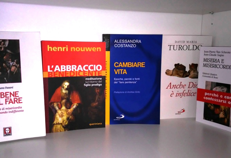 Henri Nowen, «L’abbraccio benedicente – Meditazione sul ritorno del Figliol prodigo», Ed. Queriniana.David Maria Turoldo, «Anche Dio è infelice», Ed. San Paolo.Alessandra Costanzo, «Cambiare vita – Epoche, parole e fonti del “fare penitenza”», Ed. San Paolo.Andrea Gasparino, «Il Sacramento del Perdono – Gioia e festa di Dio e dell’uomo», Ed. Elledici.J.P. Van Schoote, J.C. Sagne, «Miseria e Misericordia», Ed. Qiqajon, Comunità di Bose.Bruno Fasani, «Il bene del fare – Le opere di misericordia per un mondo indifferente», Ed. Lindau.
