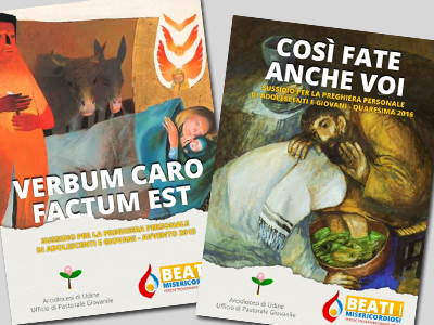 Si tratta di due libretti utilizzabili per la preghiera quotidiana nei tempi di Avvento e Quaresima (nella foto, le copertine dei sussidi 2015-2016). Ogni giorno è presente il Vangelo che la Chiesa propone nella liturgia, oltre a un commento realizzato da un gruppo giovanile sempre diverso. Ciascun sussidio propone inoltre una speciale appendice, utile per realizzare incontri in Parrocchia, sostenere una confessione, ecc.