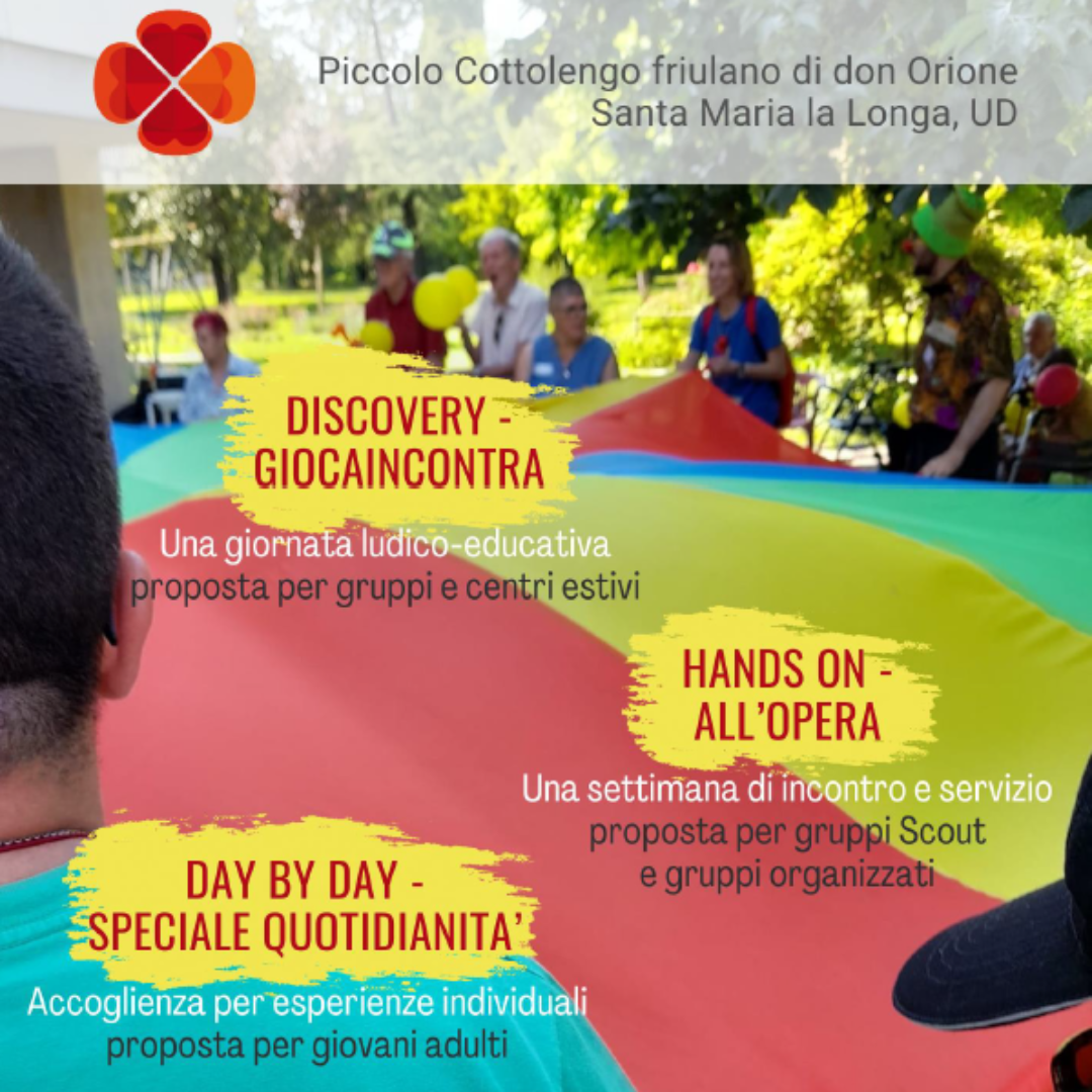 Di cosa si tratta? Il progetto «Incontriamoci al Piccolo Cottolengo friulano» di Santa Maria la Longa offre alcune proposte rivolte alla fascia degli preadolescenti, degli adolescenti e dei giovani, diversificate per gruppi e per singoli.  Esperienze pensate per incentivare e favorire le relazioni tra le comunità parrocchiali e di CP con la realtà del Piccolo Cottolengo, con particolare attenzione al far conoscere e valorizzare l’importanza relazionale che nasce dall’incontro (io, il gruppo, l’altro, la comunità), dallo stare insieme agli altri condividendo alcuni momenti della quotidianità, attraverso il servizio in un contesto di diversità e di solidarietà.