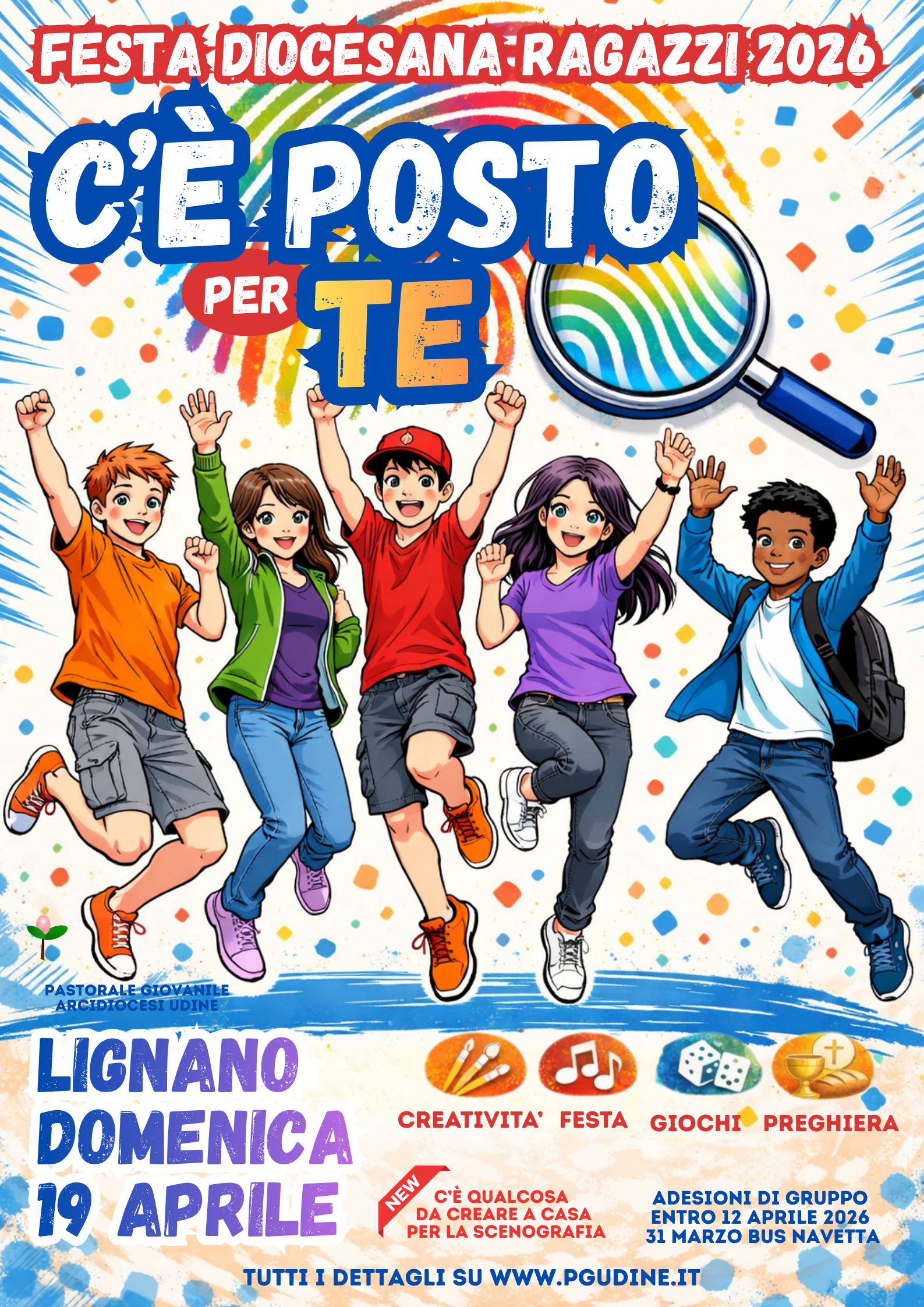 Ritorna anche quest’anno la tradizionale Festa dei Ragazzi rivolta ai preadolescenti dalla 5′ elementare alla 3′ media della diocesi che si svolgerà domenica 19 aprile 2026 intitolata “C’è posto per te”.