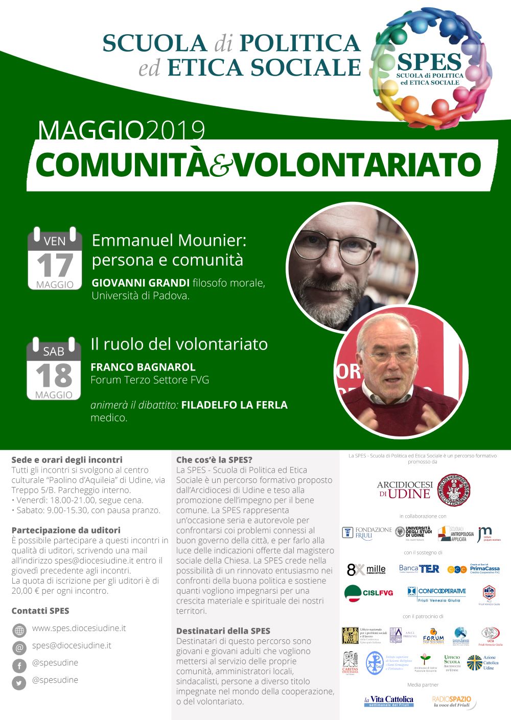 Volontariato e comunità sulla scia di Emmanuel Mounier. Questo il filo conduttore delle ultime sessioni della SPES, previste nei giorni 17-18 maggio prossimi. Con alcune novità in merito ai relatori.