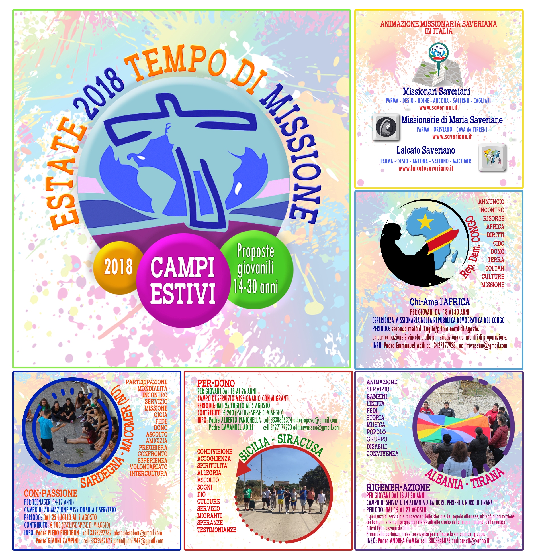 Condividiamo con piacere le proposte estive dei Missionari Saveriani, grazie al contatto e all’amicizia con i padri presenti a Udine e sul territorio diocesano. Si tratta di proposte per adolescenti e giovani: alcune iniziative sono rivolte ad adolescenti fin dai 14 anni. Segue l’elenco delle proposte, reperibili anche sul depliant riassuntivo.