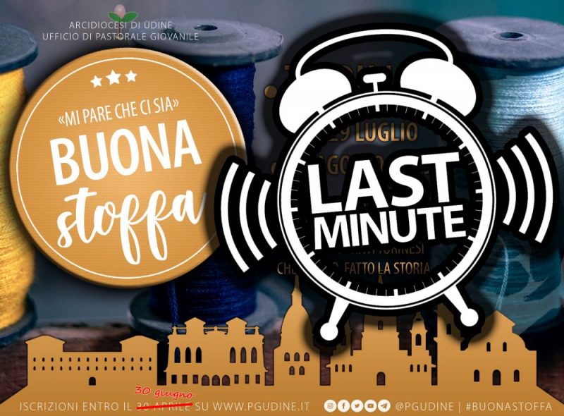 Dall’Ufficio di Pastorale Giovanile comunichiamo che c’è una decina di posti ancora liberi per «Buona Stoffa», la settimana estiva prevista a Torino e Piemonte da lunedì 29 luglio fino a sabato 3 agosto 2019. È quindi possibile costituire qualche gruppetto “last minute” o aggregare ritardatari al proprio gruppo già costituito.