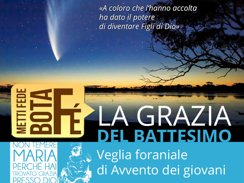La proposta 2017-2018 si intitola: «La grazia del dono del Battesimo – A quanti l’hanno accolto ha dato il potere di diventare Figli di Dio». La traccia si inserisce nel percorso “Bota fé” legato al tema PG dell’anno: «Non temere Maria, perché hai trovato grazia presso Dio»: la veglia di inizio anno, svoltasi nelle macro-zone, aveva per tema «La grazia del dono della Parola di Dio», una Parola che era prima di ogni altra cosa. La seconda tappa, svoltasi in Seminario lo scorso 17 novembre, era intitolata «La grazia del dono della vita».