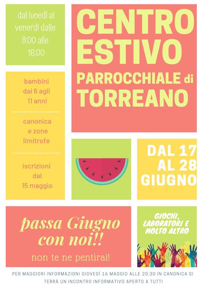 La prima esperienza di oratorio estivo torreanese – le cui iscrizioni apriranno contestualmente all’incontro di presentazione – si svolgerà dal 17 al 28 giugno, dalle 8.00 alle 16.00, nei locali della Parrocchia di Torreano. L’oratorio estivo sarà aperto a bambini e ragazzi dai 6 agli 11 anni.