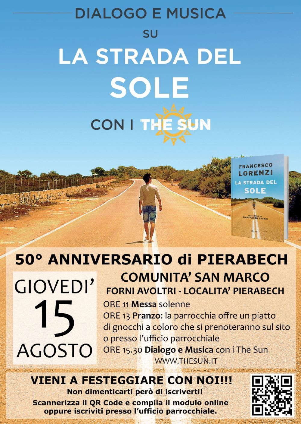 Sarà la nota band dei The Sun a festeggiare – con un suggestivo concerto in quota – i 50 anni di campi estivi che la Parrocchia udinese di San Marco propone annualmente nella propria struttura di Pierabech (Forni Avoltri). Il grande evento è previsto per il giorno dell’Assunta, giovedì 15 agosto, proprio a Pierabech.