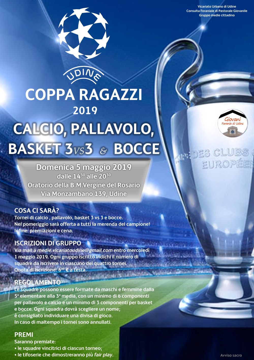 - Sono invitati tutti i ragazzi delle Parrocchie del Vicariato Urbano di Udine, dalla V elementare alla III media.