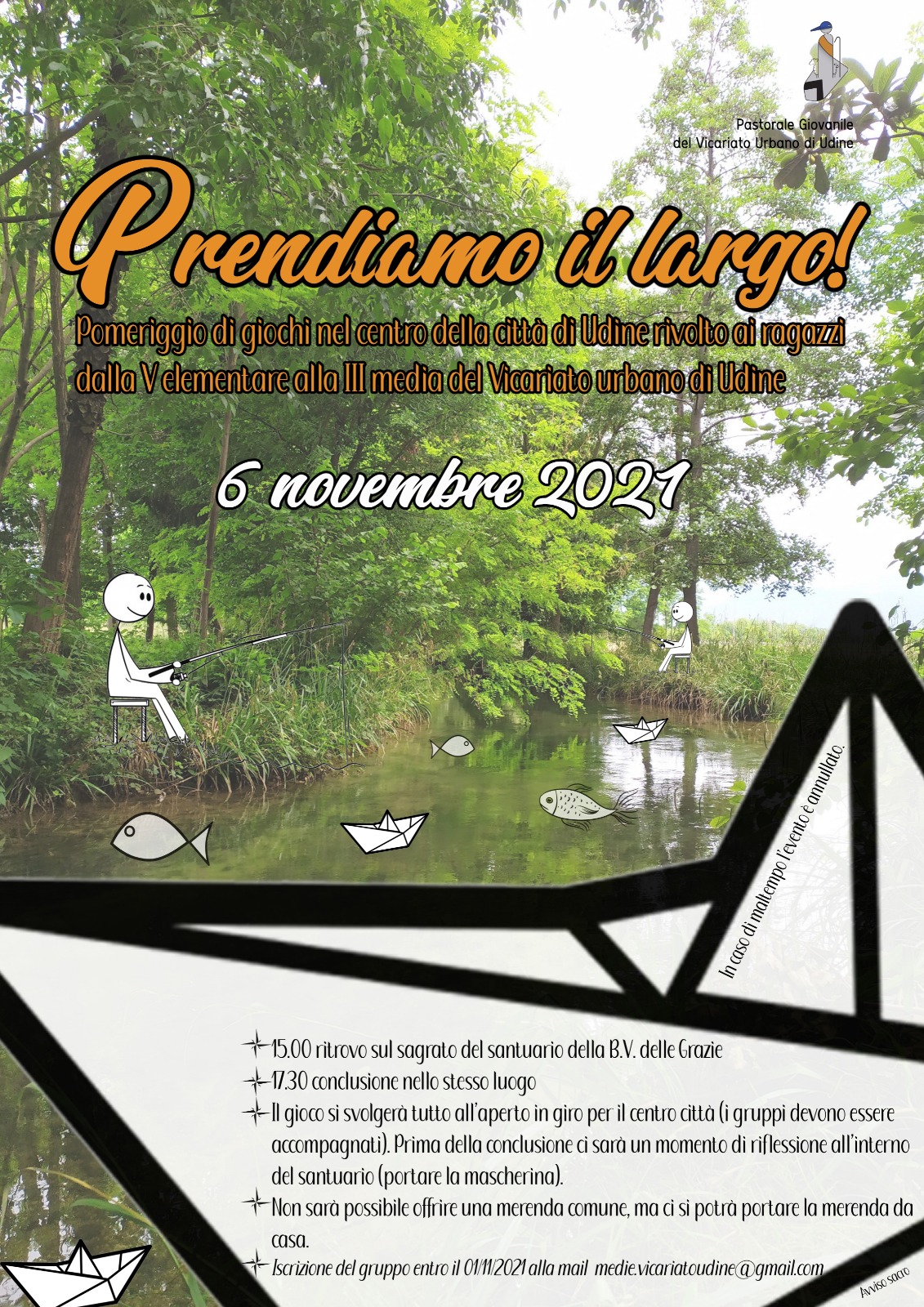 Il “gruppo medie” che opera in seno alla Pastorale giovanile del Vicariato urbano di Udine propone ai gruppi di pre-adolescenti delle Parrocchie e degli scout del Vicariato un pomeriggio di animazione e divertimento intitolato «Prendiamo il largo!». Ispirato al tema dell’anno pastorale 2021-2022, il pomeriggio avrà luogo sabato 6 novembre.