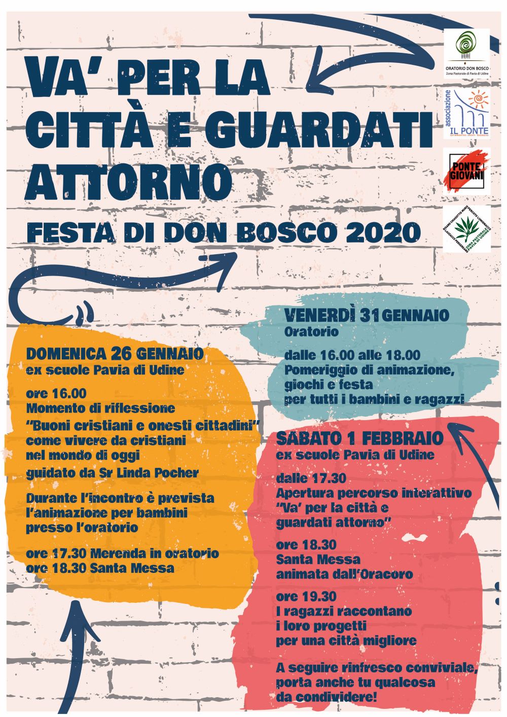 Al via i festeggiamenti di Don Bosco nell’Oratorio di Pavia di Udine. Molti gli eventi proposti: domenica 26 gennaio, si è svolto l’incontro “Buoni cristiani e onesti cittadini: come vivere da cristiani nel mondo di oggi” guidato da suor Linda Pocher e rivolto ad adulti e famiglie; per i più piccoli, venerdì 31 gennaio dalle 16.00 l’oratorio sarà teatro di animazione, giochi e sorprese. Tutte le proposte avranno come filo conduttore quella frase che don Cafasso rivolse a Don Bosco per aiutarlo a comprendere la direzione della sua vita sacerdotale: «Va’ per la città e guardati attorno».